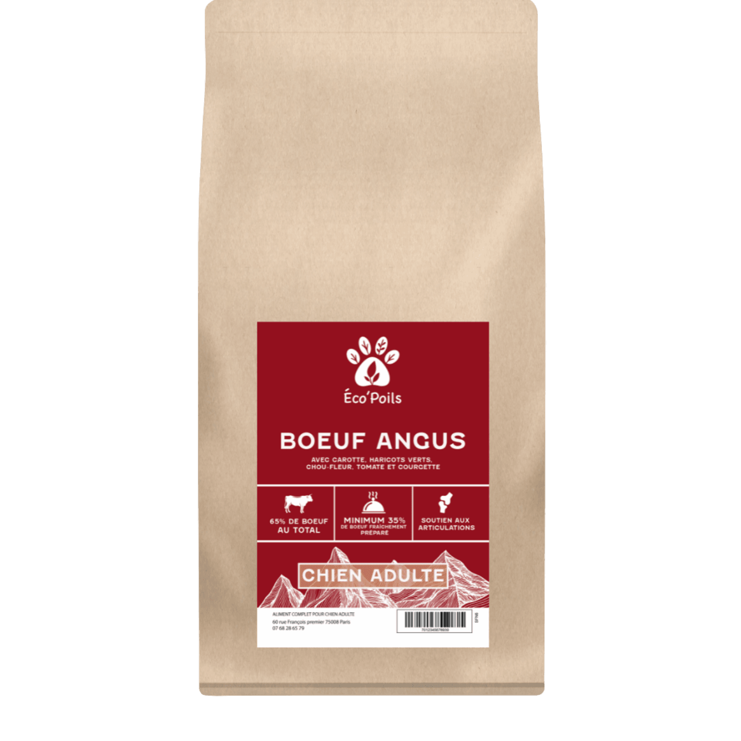 Avec 65 % d’ingrédients animaux, dont 35 % de bœuf Angus fraîchement préparé, cette recette premium fournit des protéines riches en acides aminés essentiels, vitamines et minéraux indispensables à la santé et au bien-être du chien.